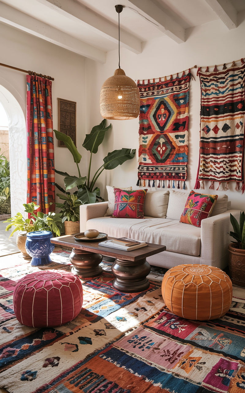 To infuse your home with a sense of wanderlust and character, you should add a touch of global influence, celebrating craftsmanship from across the world within your own four walls. In 2026, the essence of Bohemian design lies in its ability to tell a story through Indian block-printed textiles, Moroccan wool rugs, and Turkish kilim pillows. These elements serve as “visual souvenirs” that reflect your travels or aspirations, bringing a sophisticated, worldly energy to your environment. For those seeking home decor ideas for small apartments, global accents like South American woven baskets or hand-painted ceramics offer a high-impact way to introduce uniqueness and warmth without occupying significant floor space. This curated mix of global heritage transforms a standard room into a vibrant, high-definition sanctuary that feels deeply personal and culturally rich. Ultimately, embracing global influences allows you to create an agile, eclectic home that honors international artistry while remaining a cozy, grounded retreat.