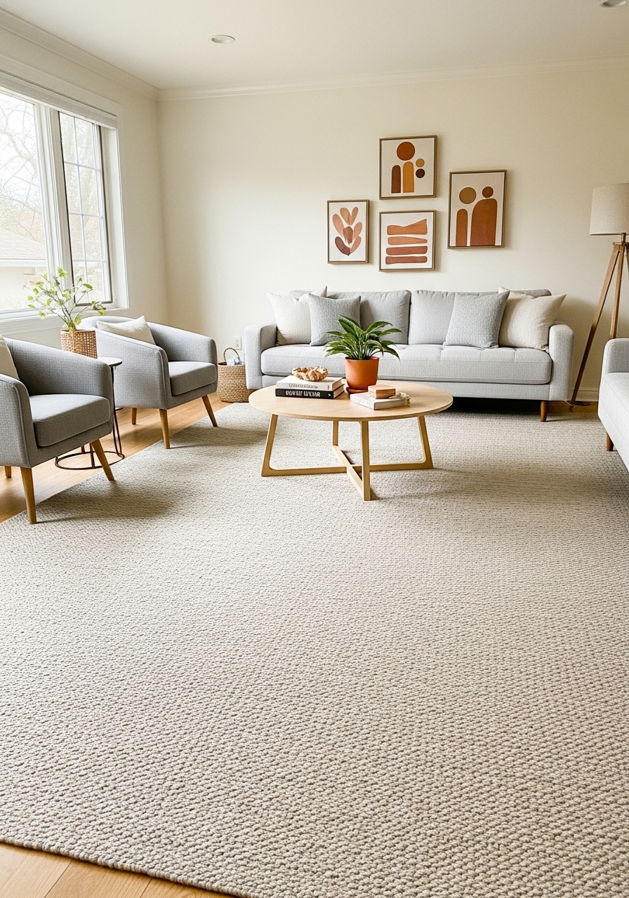 Achieve a serene, sophisticated aesthetic by integrating a neutral rug into your minimalist interior, a foundational design choice that provides essential warmth and comfort without disrupting a clean, monochromatic palette. In a minimalist living room—where “less is more”—a soft beige, ivory, or charcoal gray rug acts as a subtle textural layer that bridges the gap between sleek furniture and hard flooring surfaces like polished concrete or light oak. By placing a large, understated rug under your seating area, you introduce a sense of tactile luxury that softens the room’s acoustic profile and prevents a modern space from feeling cold or sterile. This home styling strategy relies on “quiet” patterns—such as a subtle high-low pile or a delicate marled weave—to add depth and visual interest while keeping the overall design calm and uncluttered. Interior designers often use neutral rugs to balance architectural proportions, ensuring the furniture feels grounded in the space. Whether you prefer a plush wool shag for a “soft-minimalism” vibe or a flat-weave linen for a more clinical, sharp look, a tonal area rug serves as a versatile canvas that allows your high-quality furniture pieces to take center stage. Ultimately, this approach creates a functional, cohesive sanctuary that radiates a sense of “zen” and professional-grade curation.