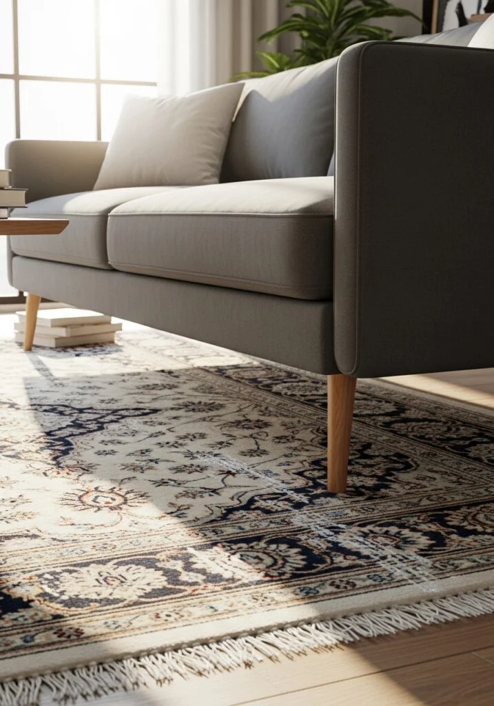 1. Place the Rug Fully Under the Sofa Set