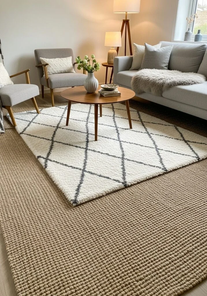 Elevate your interior’s textural depth by mastering the layered rug trend, a high-impact design strategy that instantly creates a curated, professional-grade aesthetic in any living space. This sophisticated technique involves using a large, neutral-toned base rug—typically made of durable natural fibers like jute or sisal—and topping it with a smaller, more decorative accent rug, such as a vintage Persian or a bold geometric pattern. By layering materials like wool over seagrass, you introduce an extra dimension of warmth and visual interest that is a hallmark of Boho, Scandinavian, and Modern Transitional interiors. This home styling method is not only visually stunning but also highly functional; it allows you to define a specific conversation area while protecting your primary flooring. To achieve the perfect “designer look,” ensure the bottom rug is large enough to anchor all furniture legs, while the top layer sits centered to draw the eye inward. This approach provides a versatile platform to experiment with contrasting textures and colors without the commitment of a single, massive patterned carpet. Whether you are aiming for a cozy “hygge” atmosphere or a sophisticated gallery feel, incorporating layered area rugs is the ultimate way to make your living room feel more intentionally styled, acoustically balanced, and architecturally grounded.