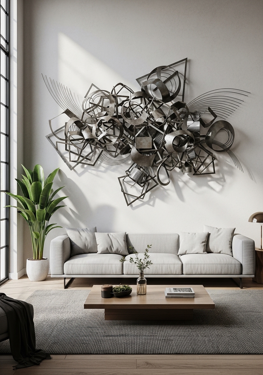 Elevate your home’s interior with modern metal wall sculptures, a sophisticated decor choice that introduces an artistic, three-dimensional element to any living space. Unlike traditional flat canvas art, a 3D metal wall sculpture creates dynamic depth and architectural interest, making it a premier choice for high-end modern and luxury interiors. Whether you select an abstract geometric design in brushed gold, matte black, or polished brass, these pieces are engineered to reflect light beautifully, shifting in appearance as the day’s natural lighting changes. This interplay of light and shadow adds a layer of visual complexity that can anchor a large blank wall above a sofa or console table. Incorporating metallic wall art is a top-tier home styling technique because it emphasizes bold, curated elements without cluttering the room. These durable, statement-making pieces serve as a sophisticated focal point that balances sleek contemporary lines with a touch of industrial or mid-century modern flair. By choosing a high-quality metal installation, you transform a simple vertical surface into a professional-grade gallery feature, ensuring your living room feels both intentionally designed and visually expansive.