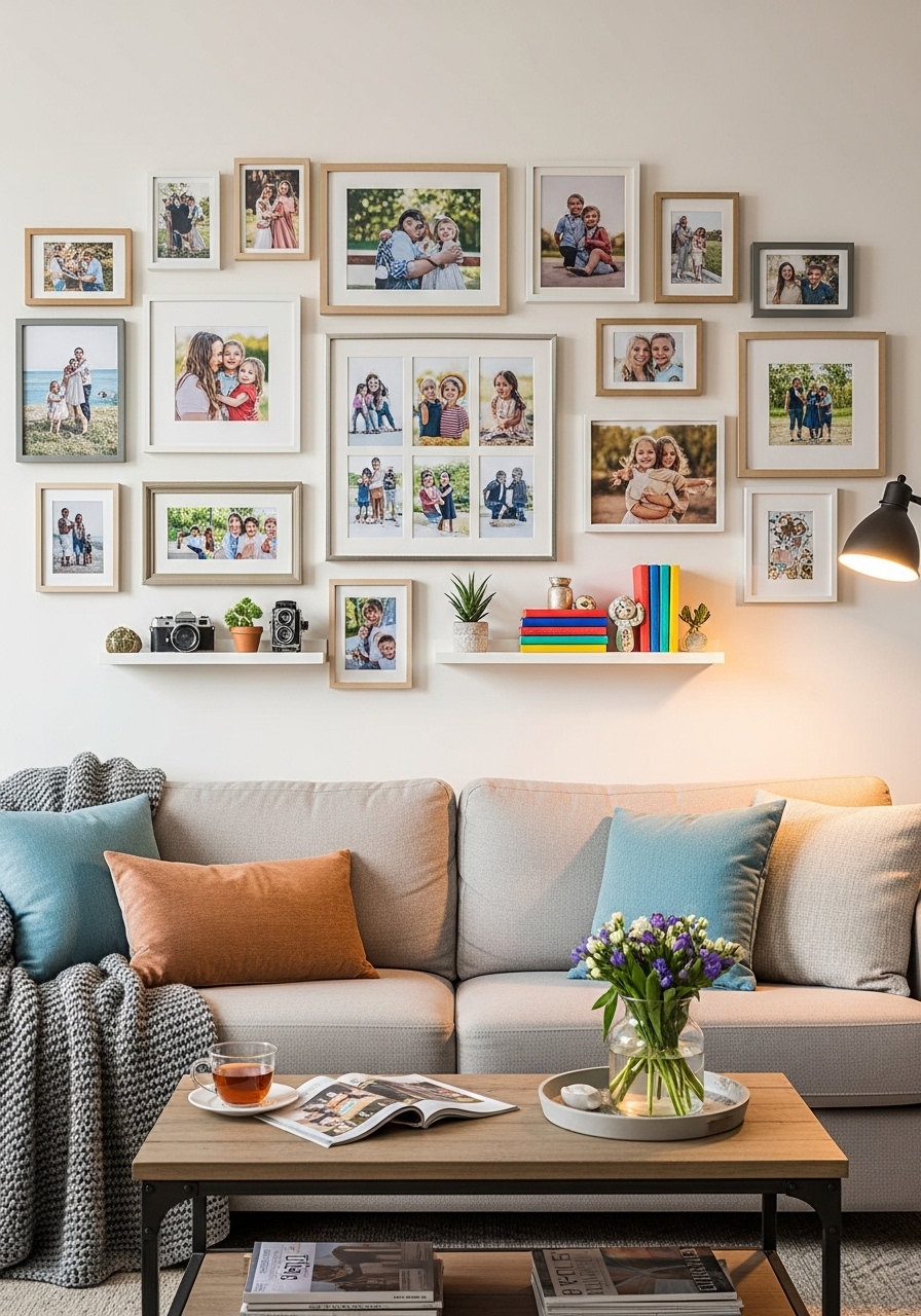 Transform your home’s atmosphere by building a personal memory photo wall, a deeply authentic design feature that infuses your living room with warmth and storytelling. This custom gallery wall approach allows you to curate a vibrant collection of family portraits, travel photography, and meaningful artwork, turning a sterile blank wall into an engaging visual narrative. To maintain a professional and cohesive interior design, utilize matching frames—such as sleek black metal or natural wood—which provide a unifying border for diverse images. This structured yet personal display acts as a powerful focal point, inviting guests to explore your unique history while adding a layer of “lived-in” luxury that modern minimalist spaces often lack. For a home styling win, consider a balanced asymmetrical layout for a relaxed feel or a precise grid for a more formal aesthetic. Beyond its decorative value, a memory-inspired accent wall anchors your furniture and reflects your personality, making it an essential element for creating a space that feels both expertly curated and intimately yours. By integrating these high-quality, framed memories, you achieve a sophisticated, gallery-like finish that balances modern trends with timeless, sentimental value.