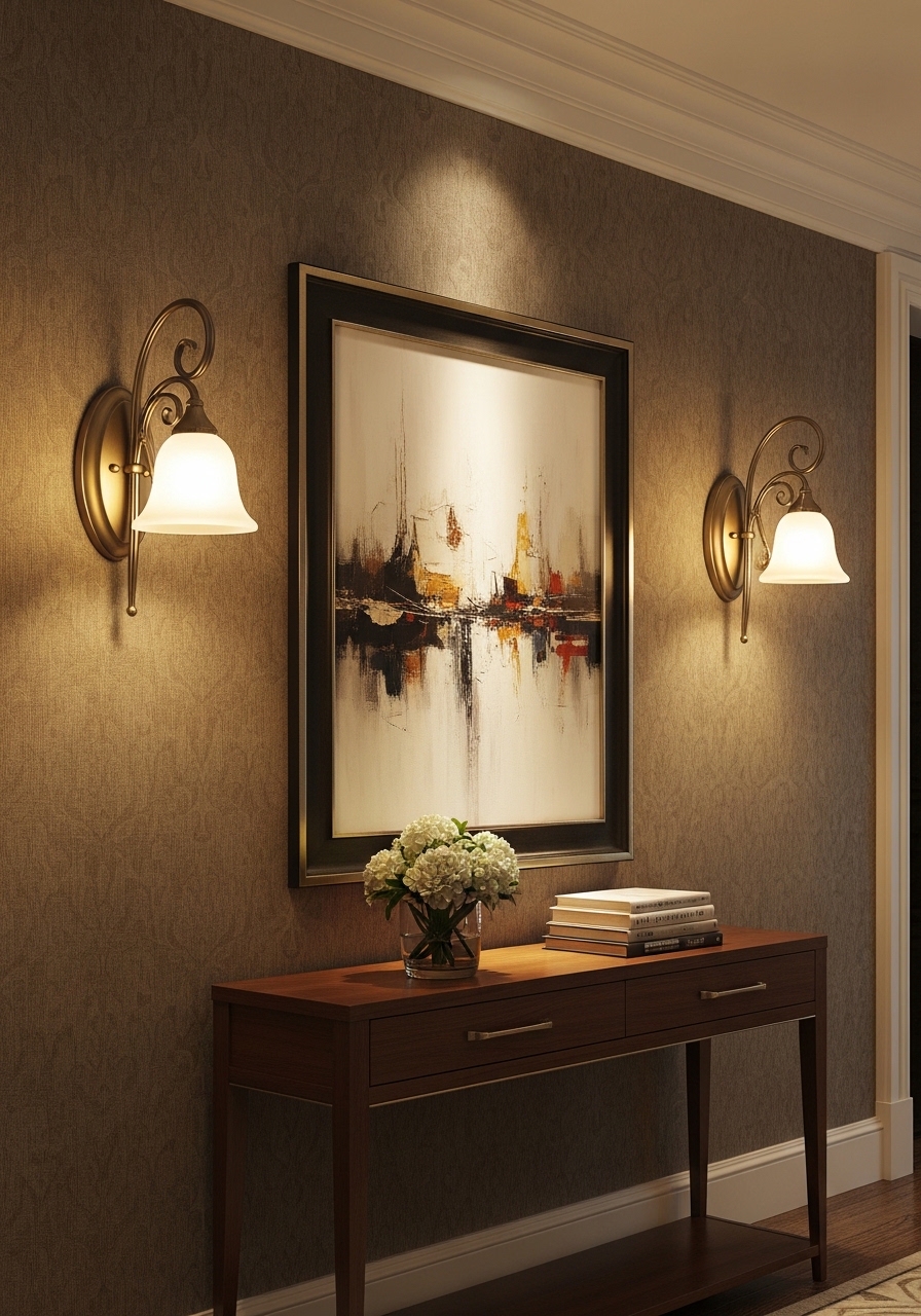 Elevate your interior lighting design by installing elegant wall sconces, a sophisticated decor solution that seamlessly blends functional ambient lighting with high-end architectural style. Positioning decorative wall lamps on both sides of a mirror or a large piece of fine art creates a balanced, symmetrical composition that mimics the polished look of professional gallery displays. Whether you choose modern minimalist sconces with brushed metal finishes or classic designs with frosted glass shades, these fixtures add a layer of luxury and depth to your living room walls. Beyond their aesthetic appeal, wall-mounted lights are essential for layered lighting schemes, providing a warm, inviting glow during the evenings that highlights textures and eliminates harsh shadows. This design approach is a favorite for home staging and luxury renovations because it enhances the room’s atmosphere while serving as a permanent decorative element. By replacing standard overhead lights with thoughtfully placed accent wall sconces, you create a sophisticated visual hierarchy that grounds your furniture and draws the eye to your home’s best features. Integrating smart dimmers with your sconces further allows you to customize the mood, ensuring your living space feels both intimate and intentionally designed, day or night.