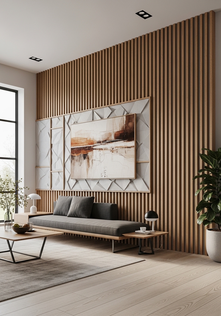 5. Install Wood Slat or Textured Wall Panels