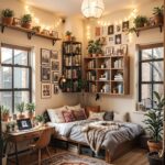 One of the most inspiring trends in college dorm inspo is the light academia bedroom aesthetic. This style blends creamy whites, warm wood tones, muted greens, and soft lighting to create a calm, intellectual vibe. Ideal for book lovers and creatives, a light academia-inspired college dorm room feels timeless and peaceful, encouraging focus while still offering warmth and personality.