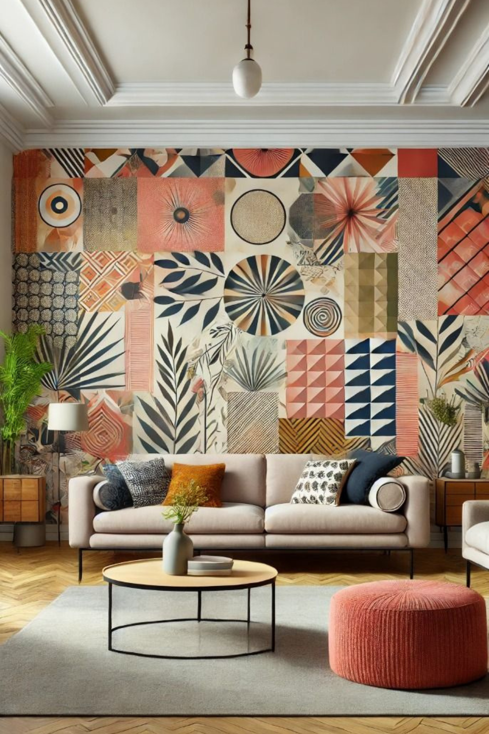 Feature walls with geometric wallpaper become instant focal points. Sunburst motifs, chevrons, or zigzag patterns create energy and style without overwhelming the room. Pairing it with minimalist furniture keeps the balance perfect.