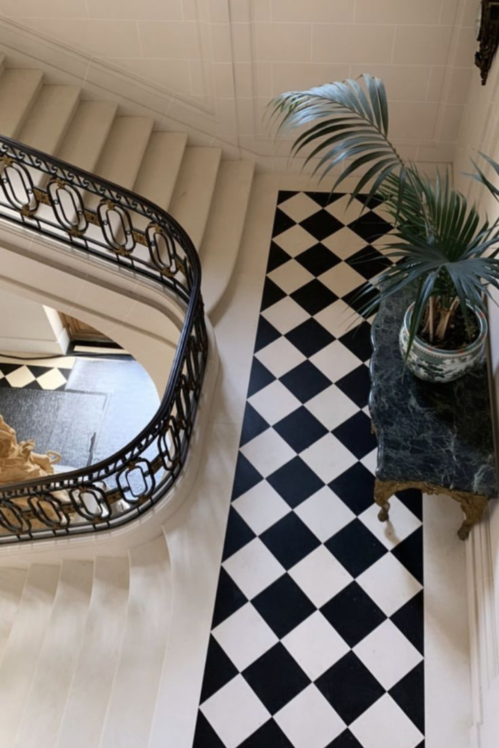 Checkerboard floors are timeless and incredibly versatile. In apartments, black-and-white tiles add visual interest while maintaining a neutral palette. They work perfectly with both bold colored walls and metallic accents, keeping the space modern yet elegant.