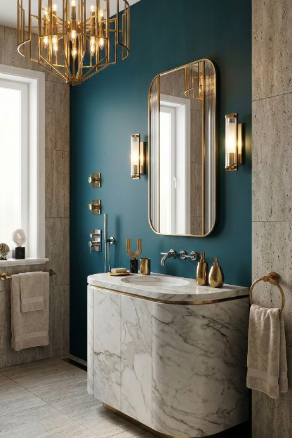 Bathrooms don’t get left out. Marble vanities, gold fixtures, and geometric tiles create a spa-like atmosphere. Even small bathrooms feel expansive and sophisticated with strategic use of Art Deco elements.