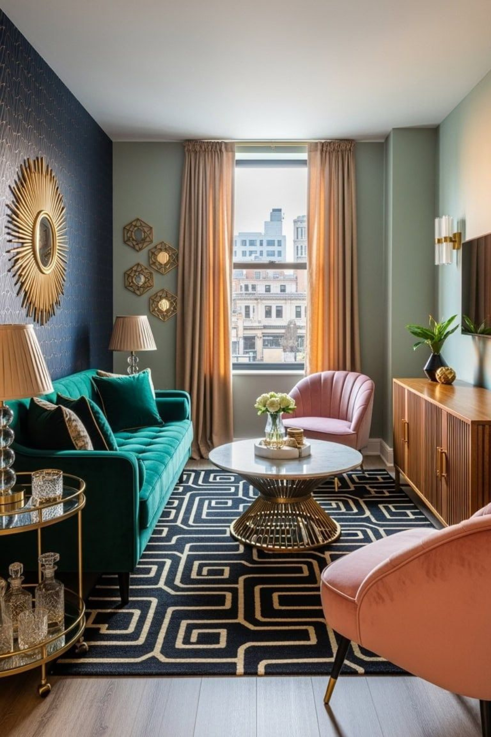 In small apartments, it’s easy to overdo Art Deco elements. Choose a few statement pieces rather than cluttering the space. Focus on lighting, a bold sofa, or a mirrored wall to keep the luxurious vibe without overwhelming.