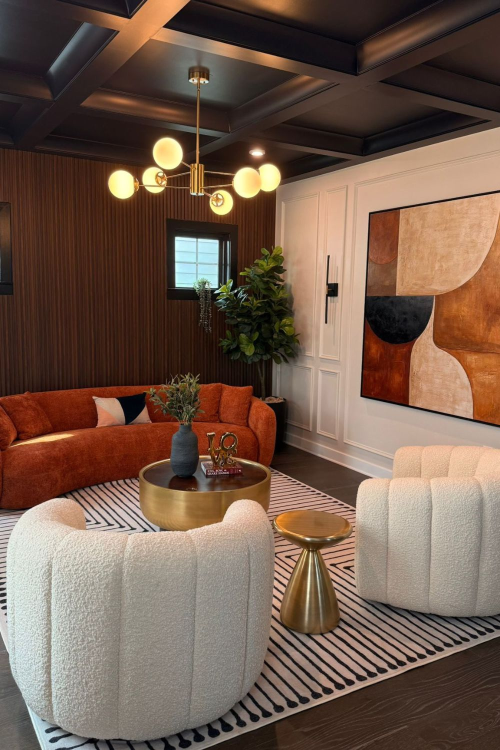 Art pieces featuring chevrons, zigzags, and sunbursts tie the design together. Even small prints above sofas or beds create cohesion and elevate the luxury feel.
