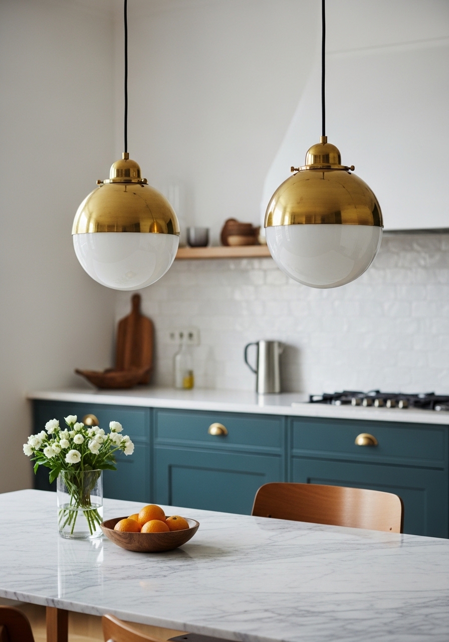 Installing sculptural brass pendant lighting is the ultimate way to crown your Summer Neo-Deco interior with “ceiling jewelry.” To achieve a professional look, choose globe or tiered silhouettes that provide a fluid, organic contrast to the linear edges of kitchen islands or dining tables. Opt for a brushed brass finish to reflect natural daylight, and use warm white bulbs (around 2700K to 3000K) to ensure your evenings feel intimate and glowy rather than clinical. These statement light fixtures draw the eye upward, creating vertical interest without crowding the room’s airflow. This elevated lighting design ensures your home feels architecturally significant, sophisticated, and brilliantly illuminated.