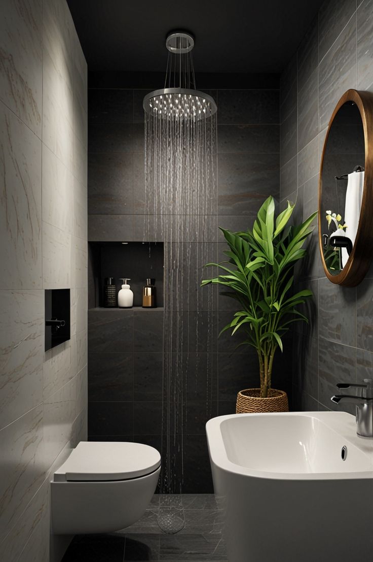 Plants bring life and freshness into even the smallest bathroom. Small greenery like ferns, pothos, or snake plants thrive in humid environments and instantly make the space feel more inviting. Hanging plants or small shelf plants work well without taking up counter space. Greenery adds natural color and creates a calming spa-like atmosphere. Even one small plant can transform the mood of a tiny bathroom. Pair plants with natural materials like wood shelves or stone tiles to enhance the organic aesthetic and create a relaxing retreat inside your home.
