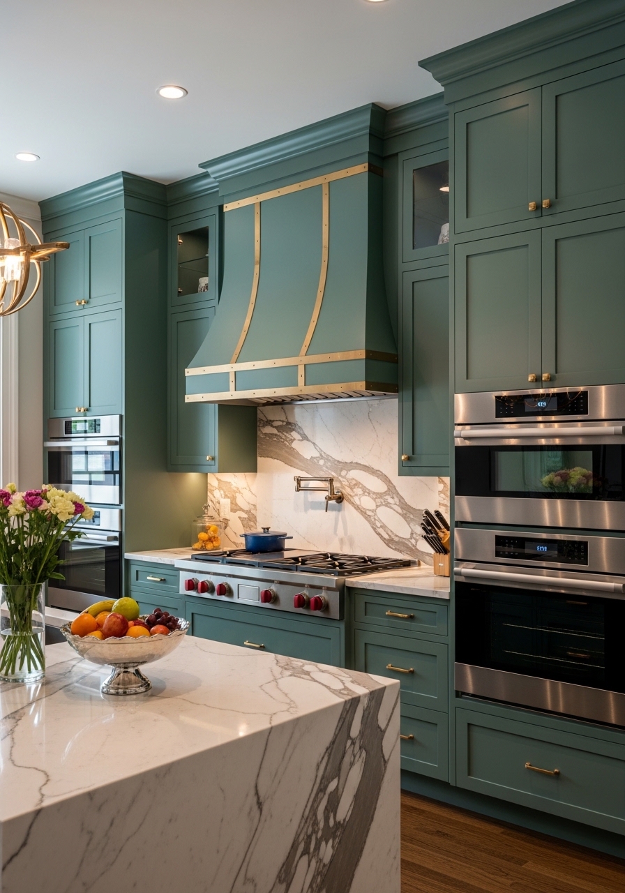 9. Emerald Green Range Hood and Appliance Integration