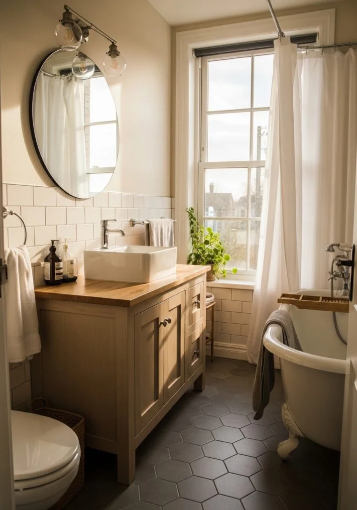 Natural light can instantly transform the feeling of a small bathroom. If your bathroom has a window, keep it unobstructed or use sheer curtains that allow sunlight to pass through. Natural light makes colors appear brighter and helps the room feel more open and refreshing. Even a small window can dramatically improve the atmosphere by connecting the space to the outdoors. Pair natural light with reflective surfaces and light-colored decor to amplify the brightness throughout the room. The result is a bathroom that feels lively, welcoming, and visually larger than its actual size.