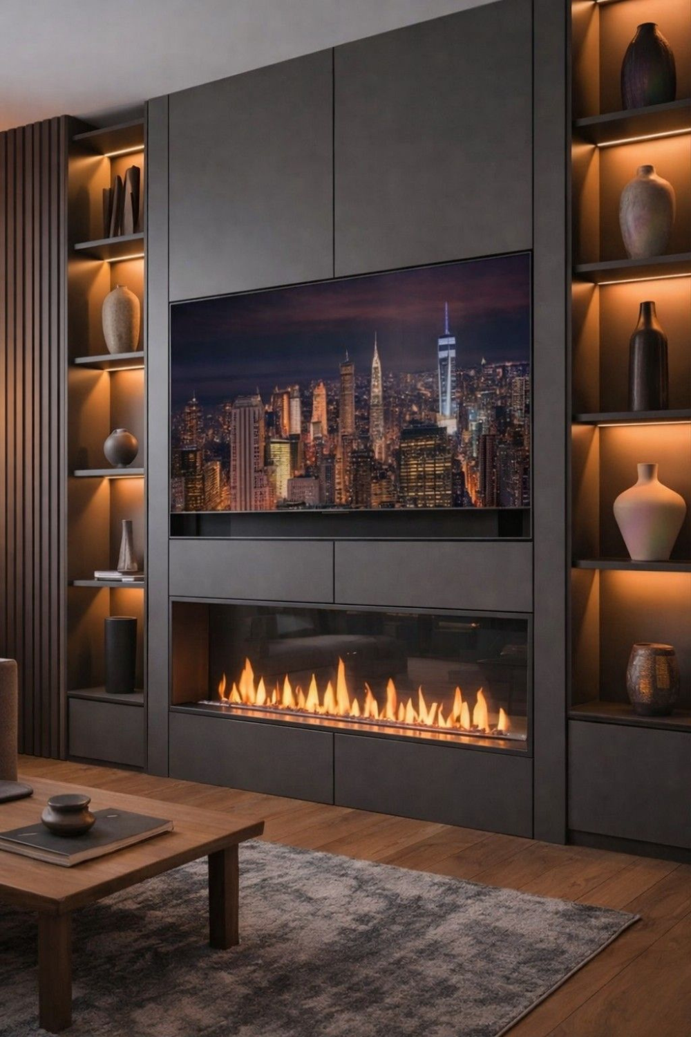 Integrate modern entertainment needs with classic white styling by choosing a fireplace entertainment center. Built-in cabinets and shelving accommodate TVs, sound systems, and decorative items while keeping cords and electronics hidden. The white electric insert adds warmth and ambiance without venting or complicated installation. Adjustable flame effects and heat settings offer both style and functionality. This design is ideal for contemporary living rooms, where convenience, organization, and aesthetic cohesion are all priorities.