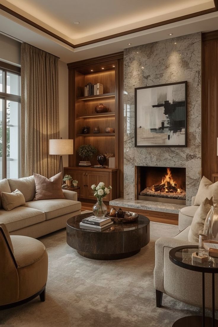Turn an awkward corner into a stylish, functional focal point with a white corner fireplace. Perfect for small rooms or unique layouts, corner fireplaces maximize floor space while brightening darker areas. Use materials like white-painted brick, stone, or tile to reflect light and create an inviting atmosphere. Built-in seating or shelving can complement the fireplace for additional utility, while décor accents like plants or lanterns soften edges and enhance coziness. This design makes even compact spaces feel luxurious, warm, and thoughtfully curated.