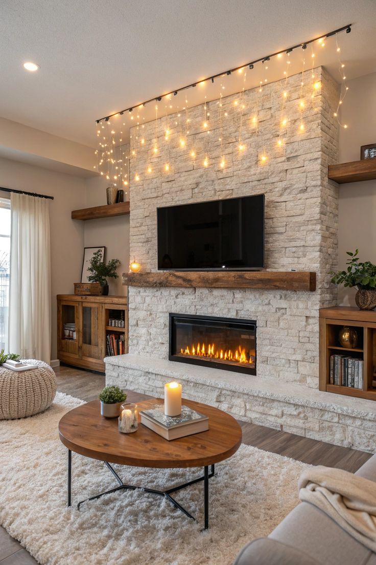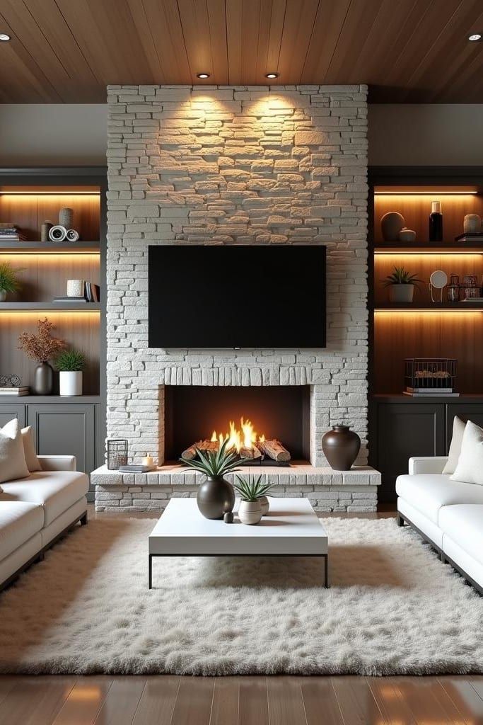 High-quality white stone veneers offer the natural beauty of stone without the cost or installation challenges of full stone. Veneers install directly over existing fireplaces, providing texture, dimension, and brightness instantly. Extend veneer to adjacent walls or accent areas for cohesive design flow. This approach brings the warmth, sophistication, and charm of natural materials while remaining practical, lightweight, and modern, making it a smart choice for both budget-conscious and style-savvy homeowners.