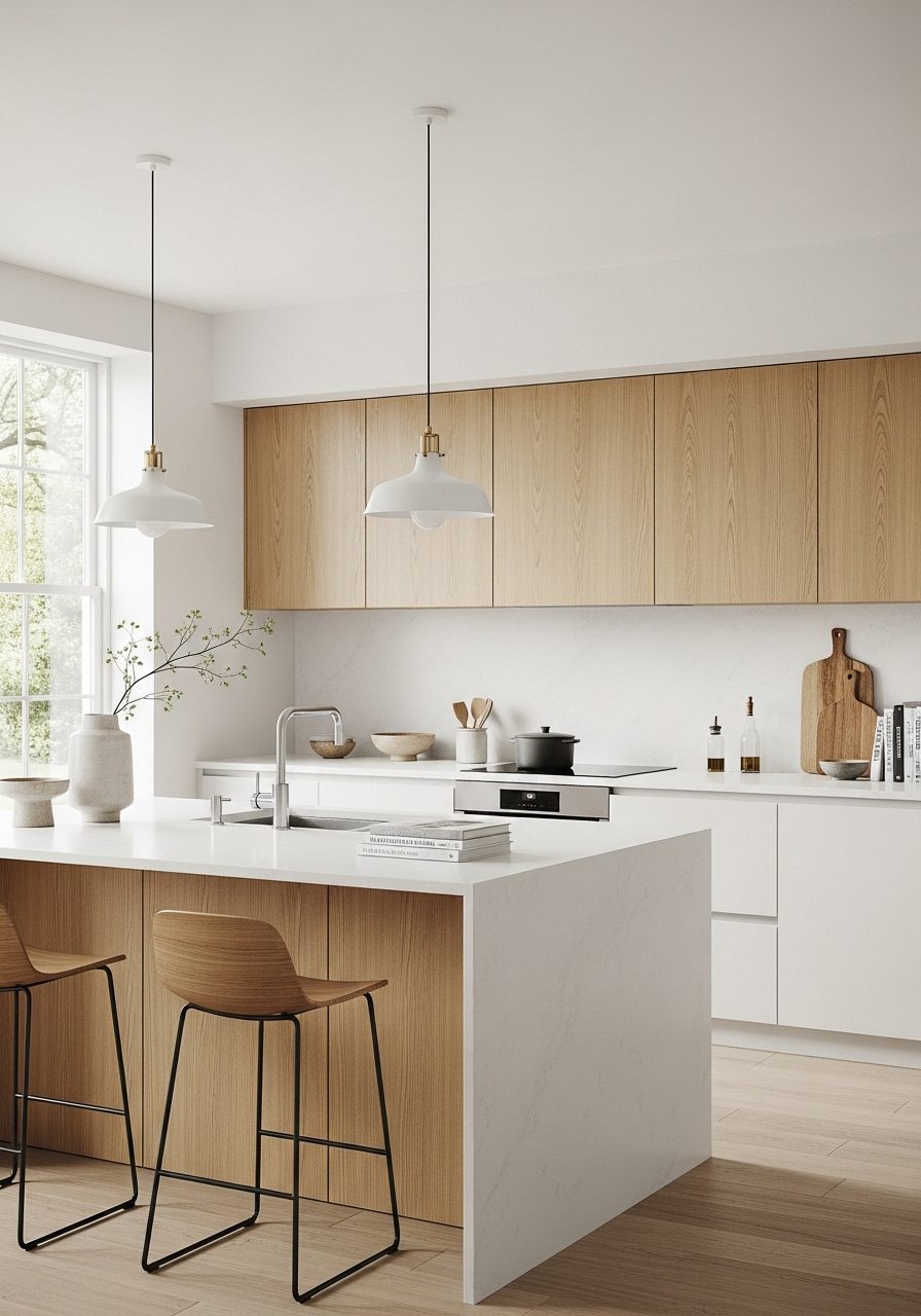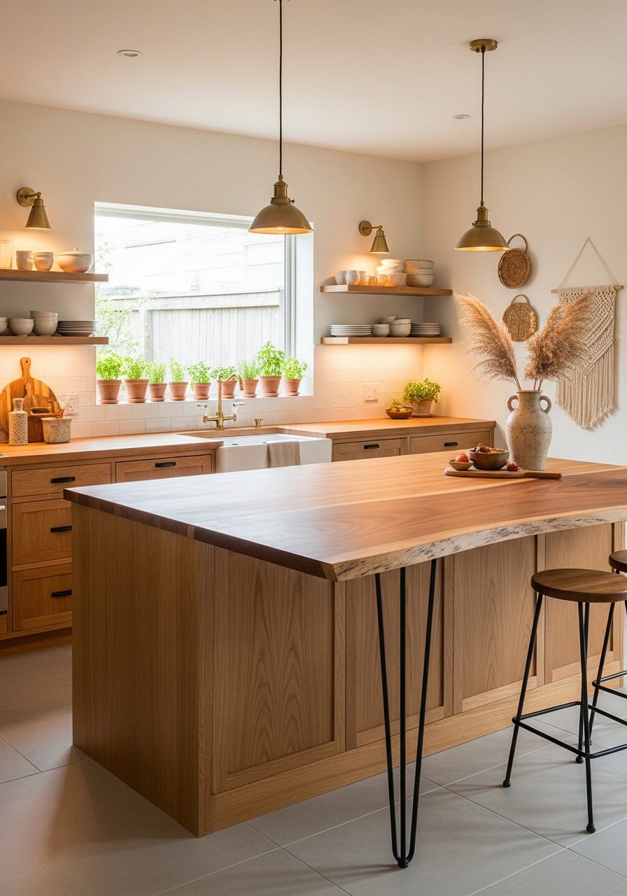 Wood accents introduce natural warmth and texture to a kitchen, softening cold surfaces such as stone countertops, metal fixtures, and tile. Wood elements—be it open shelving, bar stools, cabinetry, or cutting boards—add an organic touch that feels grounded and inviting. The contrast between warm wood and sleek modern finishes creates balance, depth, and visual interest. Even small accents, like wooden utensil holders or tray displays, enhance the sense of cohesion and polish. Wood tones also pair well with neutral color palettes, reflecting light in a soft, pleasing manner. Incorporating natural textures makes a kitchen feel approachable, cozy, and comfortable, while maintaining sophistication. Thoughtful integration of wood achieves an elevated, designer-quality look, giving your space timeless appeal and warmth that feels both luxurious and livable.