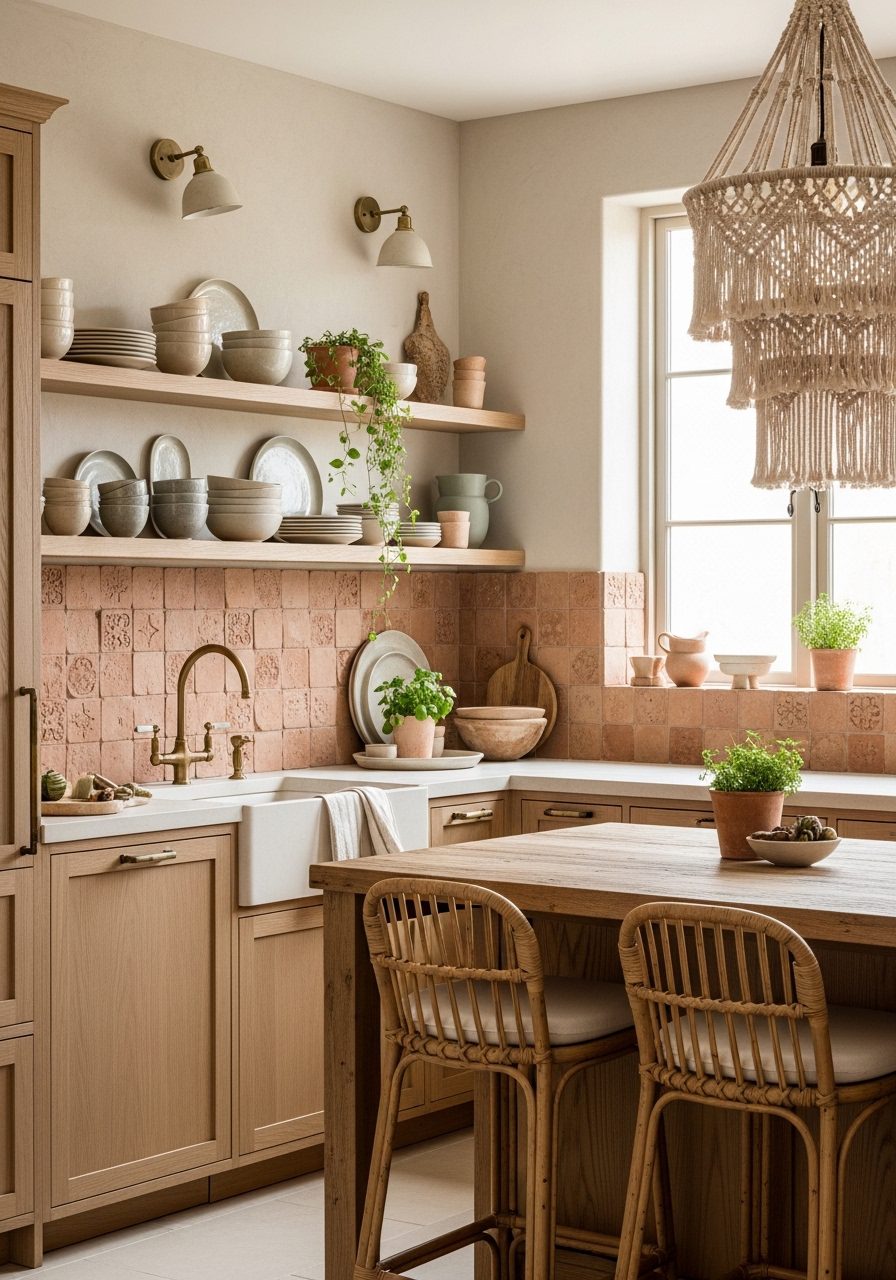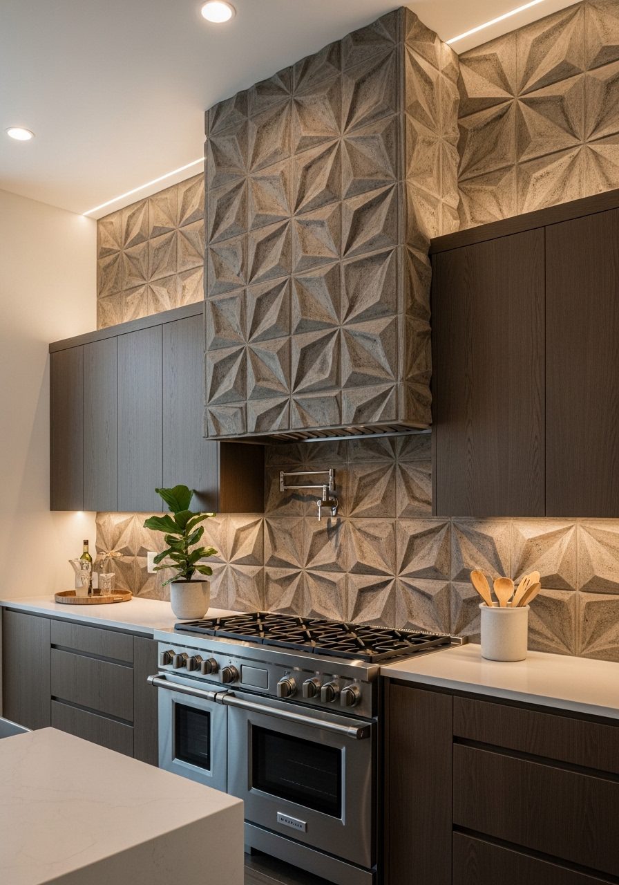 A textured backsplash transforms your kitchen from ordinary to visually captivating. Tiles like fluted ceramics, zellige, or subtle geometric patterns catch light and create depth, making walls feel dynamic and engaging. Unlike plain flat tiles, textures provide a tactile element that adds personality without overwhelming the space. Neutral shades allow the backsplash to harmonize with countertops and cabinetry while subtly drawing attention as a focal point. A statement backsplash also complements other layered design elements like lighting, hardware, and accessories. It gives the kitchen a high-end, custom feel without requiring major structural changes. Whether installed behind the range, sink, or across the entire kitchen wall, textured backsplashes bring a sense of craftsmanship, dimension, and interest. This approach is both practical and stylish, making your kitchen feel thoughtfully curated and ready for Pinterest-worthy photos.