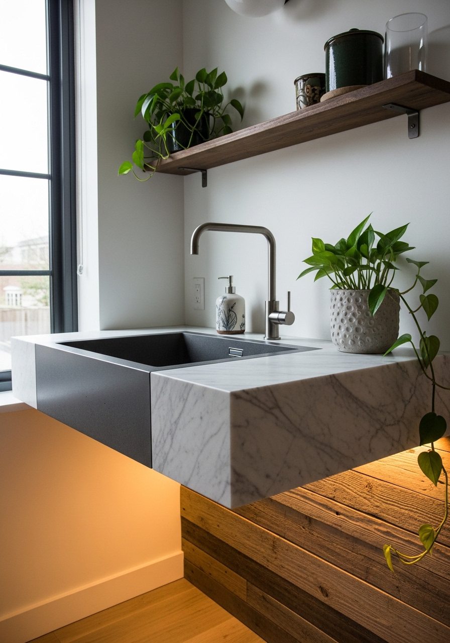 The sink area can be transformed into a stylish focal point with thoughtful styling. Coordinating soap dispensers, trays, and dish essentials in ceramic, glass, or matte finishes creates a cohesive and polished look. Adding a small vase with fresh herbs or flowers introduces life and color without clutter. Organized storage for sponges, brushes, and towels keeps the area functional while maintaining visual appeal. This styling makes the sink feel intentional, elevating a space often overlooked in design. High-quality finishes, matching hardware, and curated accessories instantly make the area feel more luxurious. The result is a clean, inviting, and practical workspace where everyday tasks feel enjoyable. Thoughtful sink styling demonstrates attention to detail, blending functionality with aesthetics and subtly enhancing the overall kitchen design.