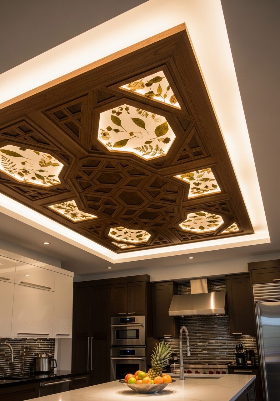 Adding architectural detail to the ceiling enhances depth and character in your kitchen. Exposed beams, decorative moldings, or textured paint draws the eye upward and creates a layered, polished effect. Ceiling details add sophistication without occupying functional space. This subtle upgrade complements lighting, cabinetry, and other finishes, giving the room an intentional, elevated design. Even in minimal kitchens, a ceiling feature adds interest and elegance. Properly integrated ceiling details make a kitchen feel thoughtfully designed, refined, and visually dynamic, creating a unique sense of style that sets it apart.