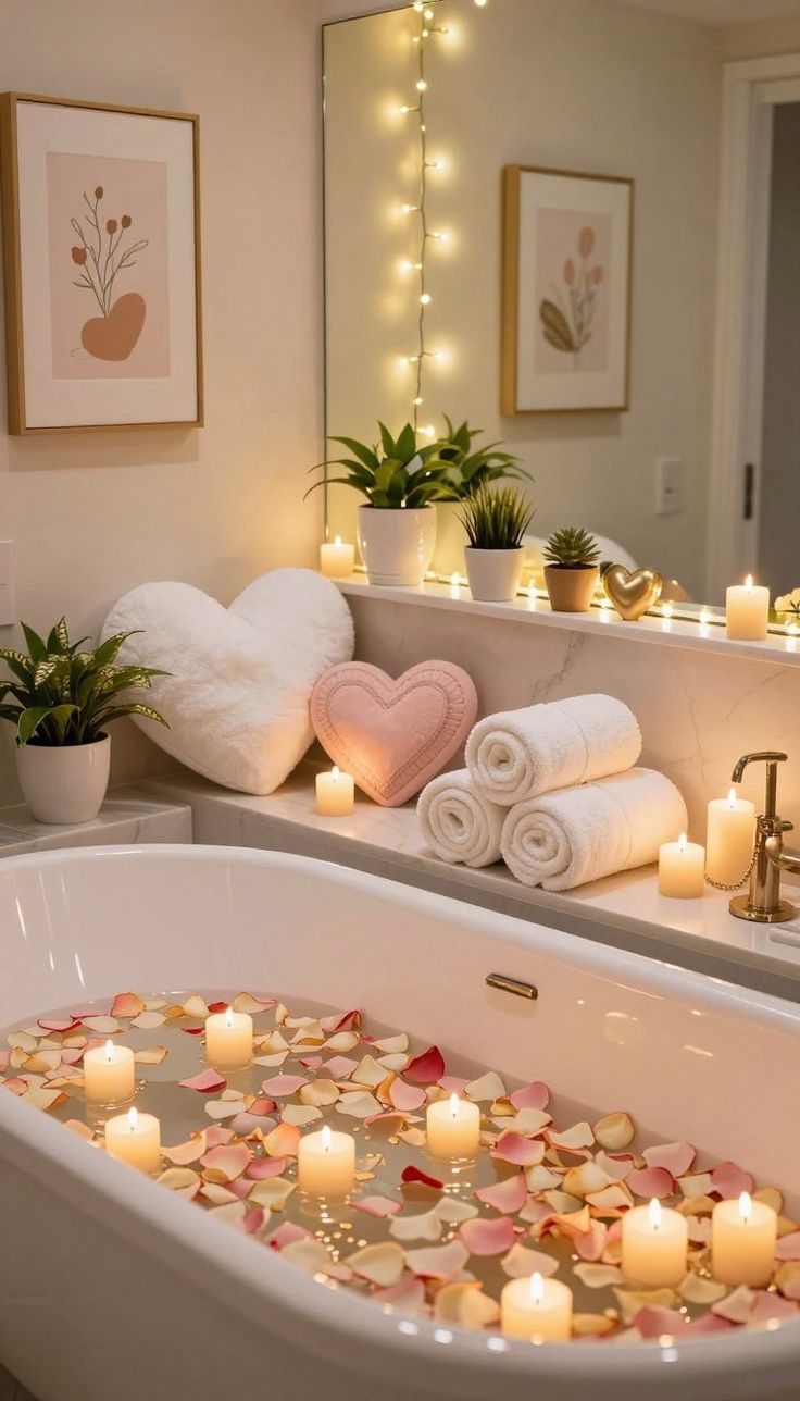 Pink Valentine’s Day bathroom decor is an unexpected but charming way to carry the theme throughout your home. Soft pink towels, soap dispensers, or small floral accents instantly refresh the space. This idea works well because bathrooms require minimal décor changes.