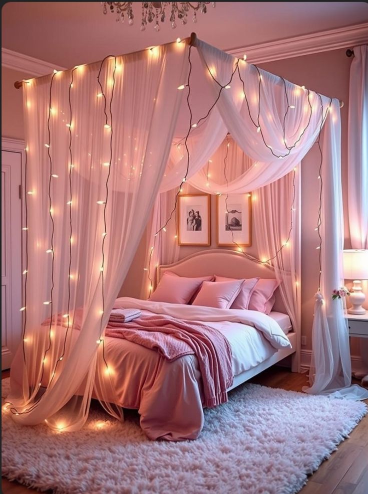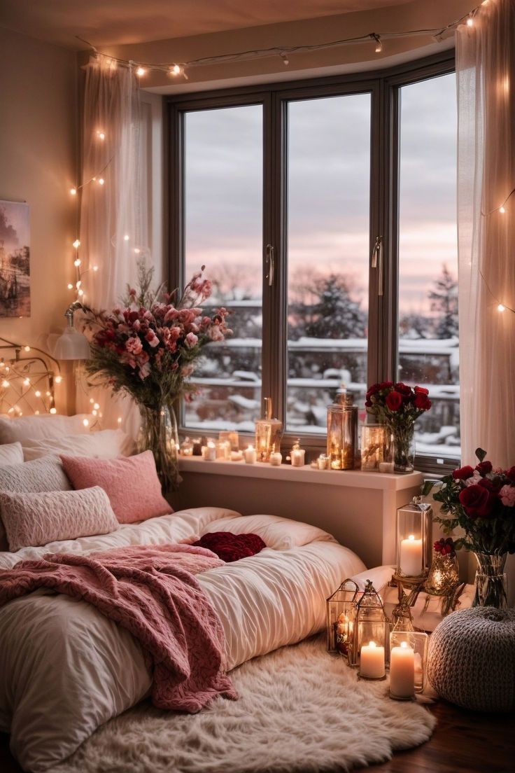Pink Valentine’s Day bedroom decor creates a romantic and relaxing vibe perfect for the season. Soft pink bedding, velvet cushions, and subtle fairy lights instantly transform the bedroom into a cozy retreat. This idea works especially well for couples or anyone wanting a calm, love-filled atmosphere without bold décor.