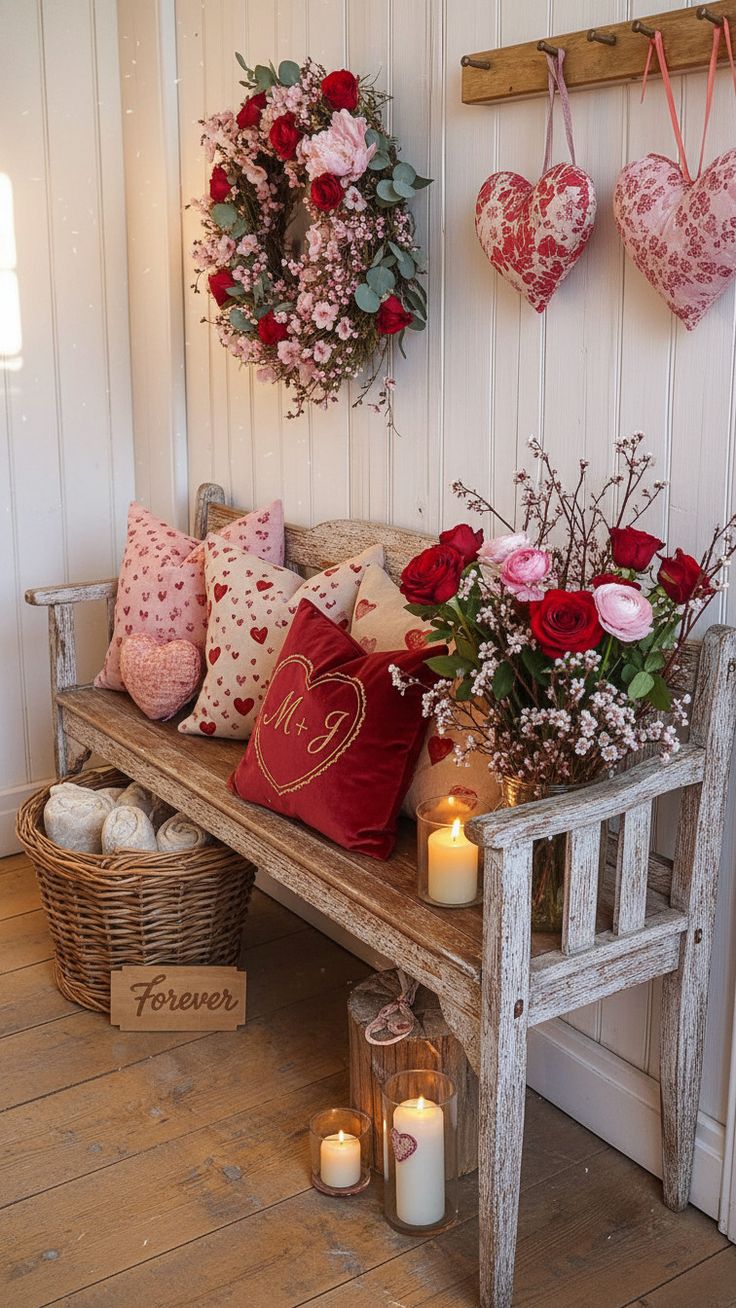 Decorating your entryway with pink Valentine’s accents creates a welcoming first impression. A pink wreath, floral arrangement, or runner instantly signals warmth and love as soon as guests walk in. This idea is perfect for those who want a high-impact look without decorating every room.