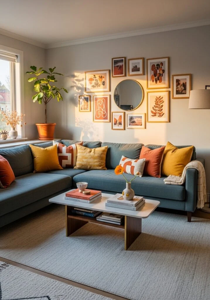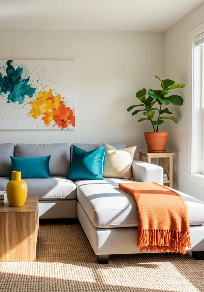 Infuse your home with vitality by incorporating accent colors thoughtfully, a high-impact design technique that prevents neutral spaces from feeling flat while reflecting your unique personality. As the final “10%” in a professional 60-30-10 color story, accent shades like mustard yellow, emerald green, or deep navy provide the essential visual “pop” needed to draw the eye and create focal points. By strategically layering these colors through low-commitment decor elements—such as plush throw blankets, sculptural vases, or vibrant wall art—you can dramatically shift the energy of a room without the permanent commitment of paint or large-scale upholstery. The secret to a designer-grade finish lies in moderation and repetition; for instance, repeating a soft blush tone in both a sofa cushion and a small decorative object on a bookshelf creates a sense of “visual rhythm” that feels intentional rather than cluttered. This color layering approach is particularly effective for modern and minimalist interiors, where a single, well-placed accent can highlight architectural lines and elevate the room’s perceived luxury. Whether you are aiming for a moody, sophisticated vibe or a bright, energetic atmosphere, using accent colors as your “finishing touch” ensures your living room remains a dynamic, visually cohesive sanctuary that is easy to update as your style evolves.
