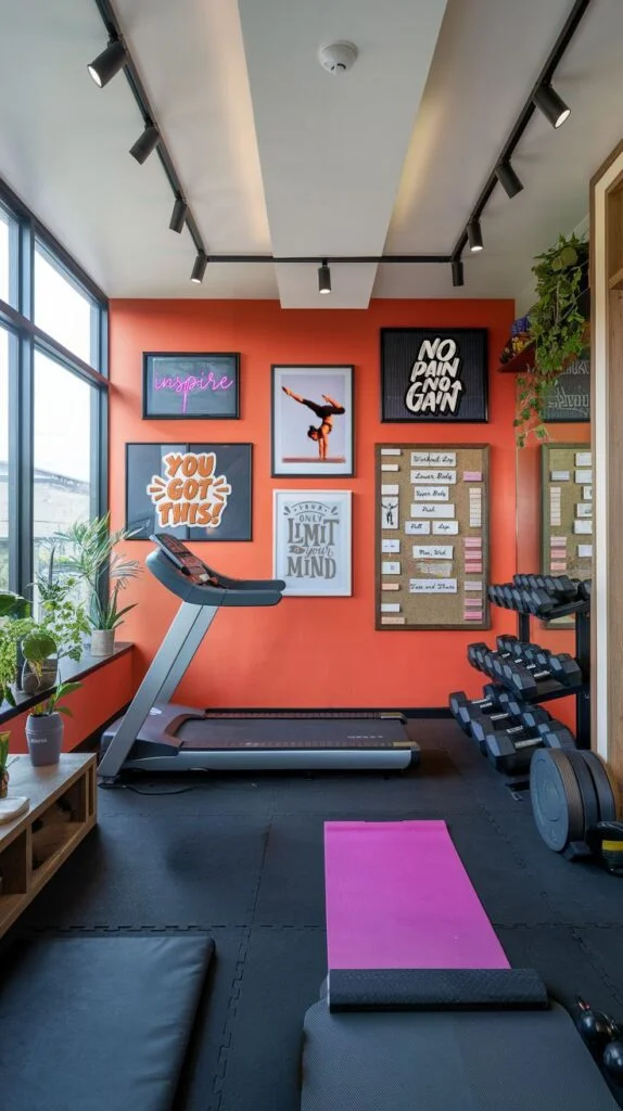 One of the biggest challenges in a home gym is keeping everything organized. Consider using smart storage solutions to maximize your space. Wall-mounted racks for weights, overhead storage for yoga mats, and floating shelves for your workout accessories will keep everything within easy reach. Use multi-purpose storage benches or ottomans to store smaller items like dumbbells, jump ropes, and resistance bands. Keeping everything organized will make your workout room more inviting and encourage consistent workouts.